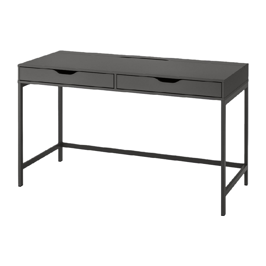Bureau noir avec double tiroir et structure métal
