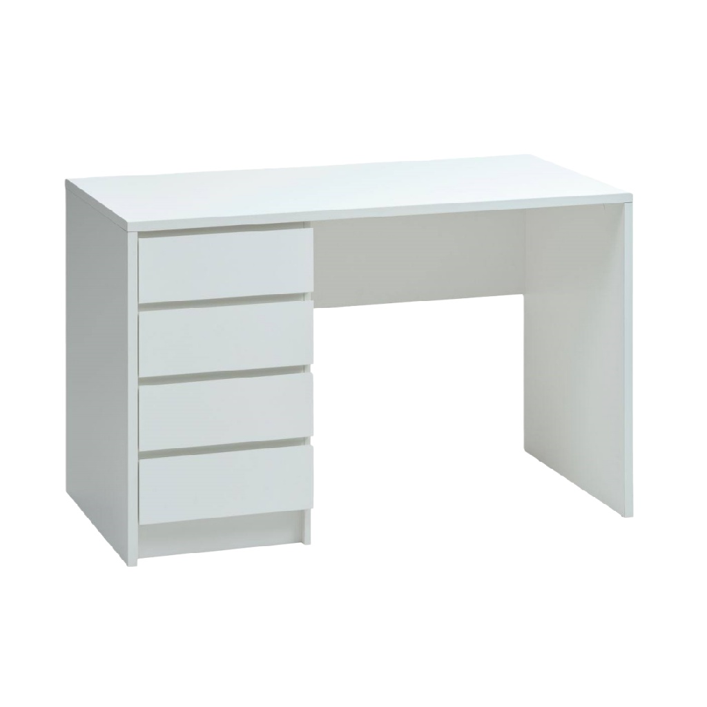 • Bureau blanc minimaliste avec bloc de 4 tiroirs intégrés
