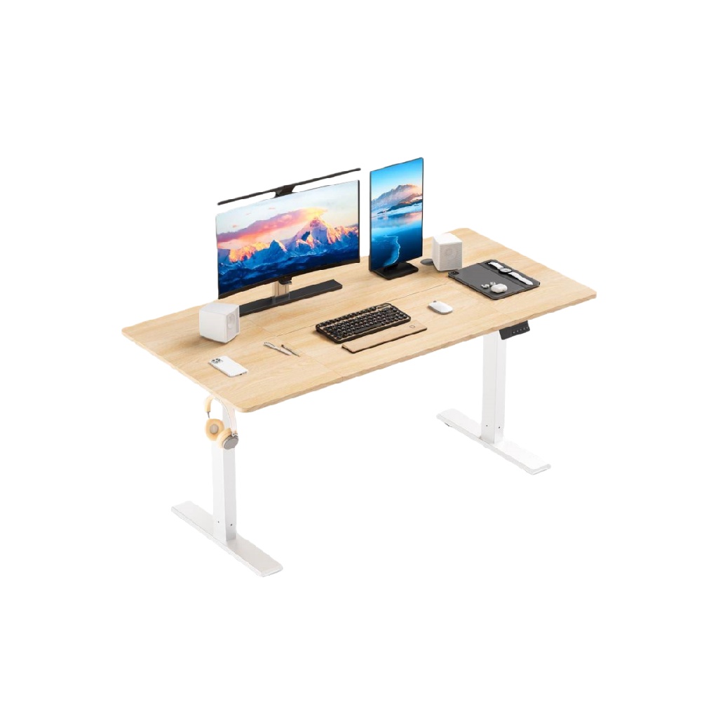 • Bureau assis-debout électrique avec plateau bois naturel