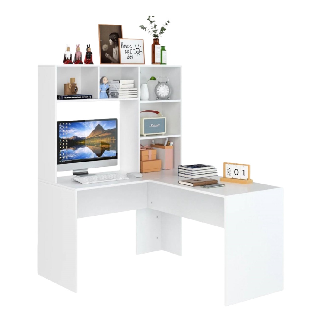 • Bureau d’angle blanc avec bibliothèque intégrée